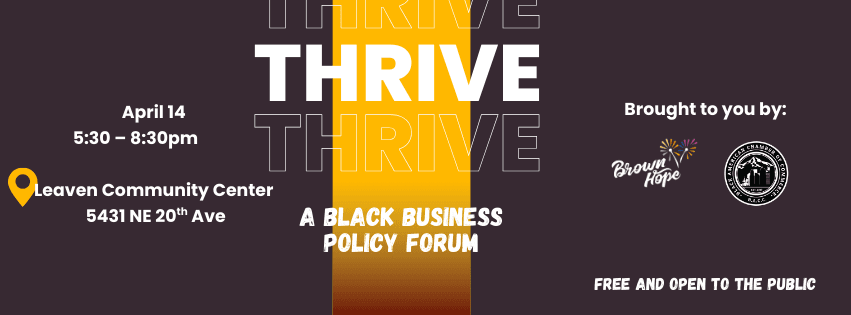 Thrive is an intentional gathering of Black innovation and abundance. Join Brown Hope and the Black American Chamber of Commerce for a special opportunity to uplift Portland’s Black businesses.